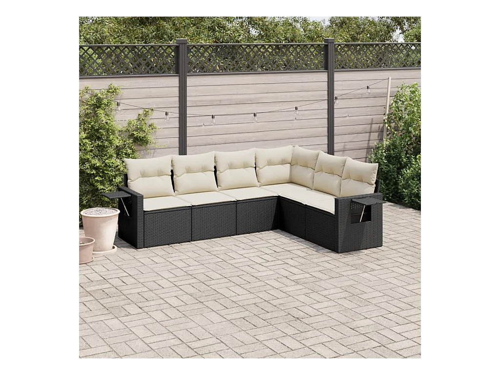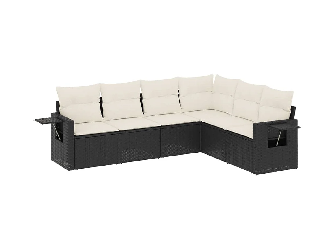 Salon de jardin 6 pcs avec coussins noir résine tressée FR83770
