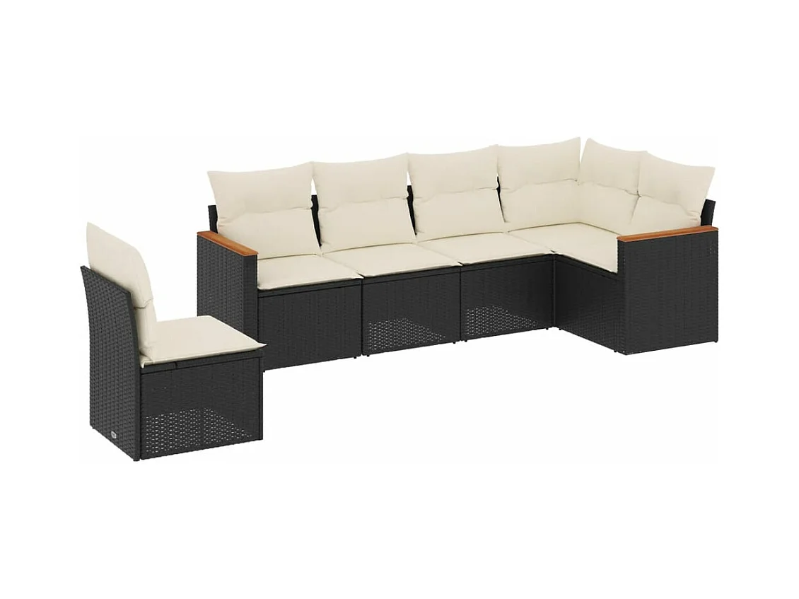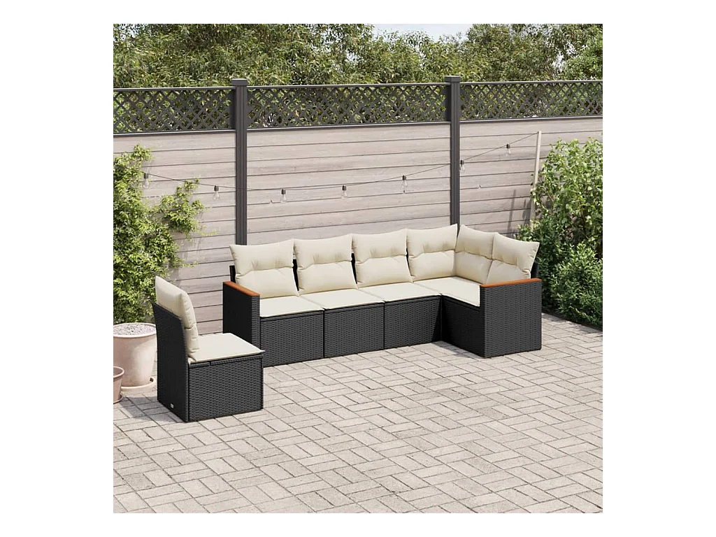 Salon de jardin 6 pcs avec coussins noir résine tressée FR27500
