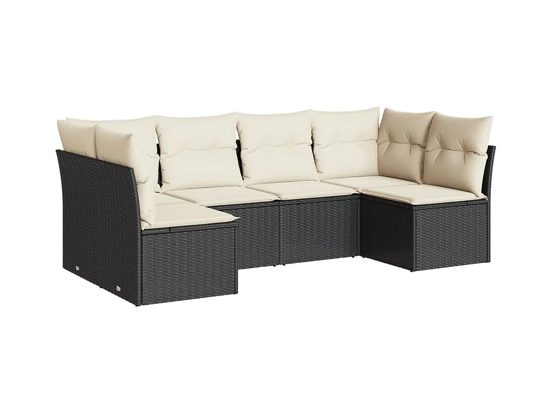 Salon de jardin 6 pcs avec coussins noir résine tressée BE38570