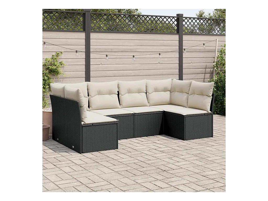 Salon de jardin 7 pièces avec coussins noir résine tressée