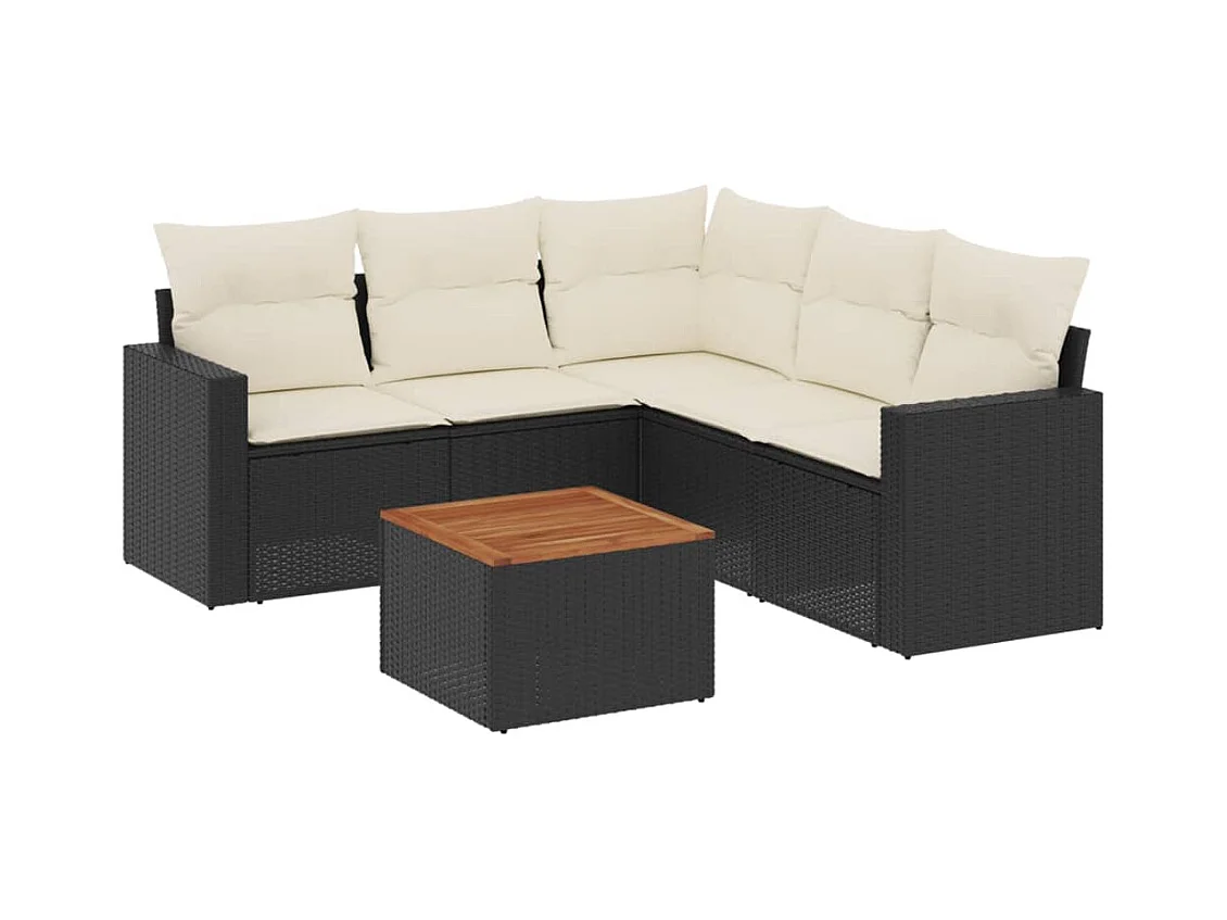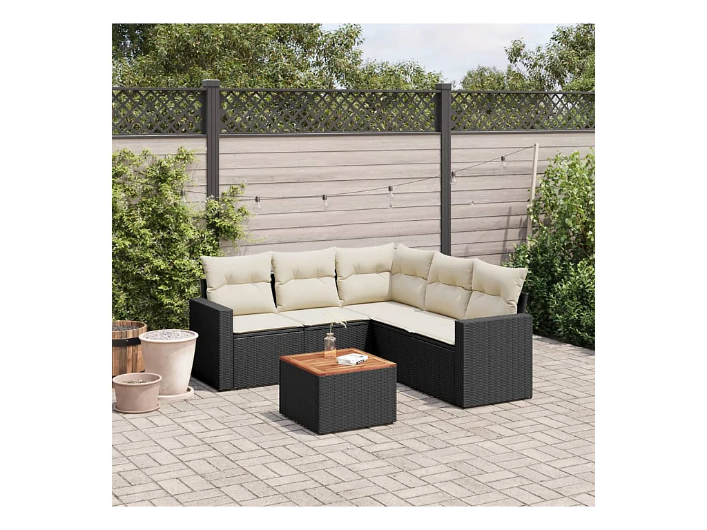 Salon de jardin 6 pcs avec coussins noir résine tressée BE64937