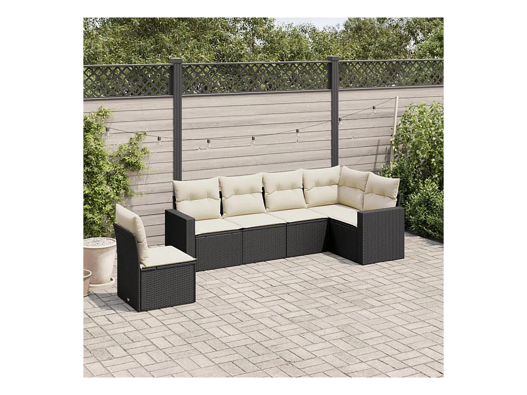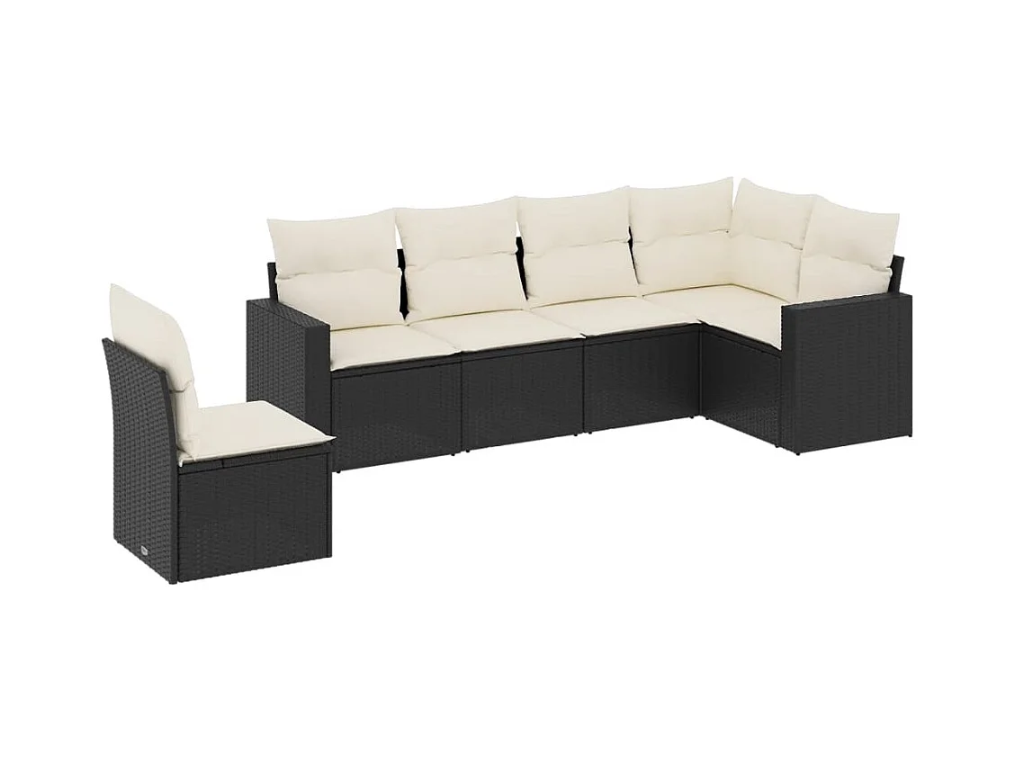 Salon de jardin 6 pcs avec coussins noir résine tressée BE27891