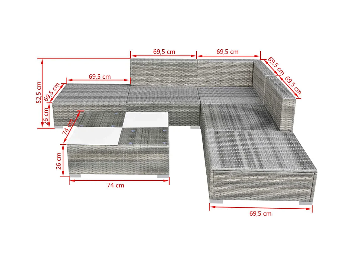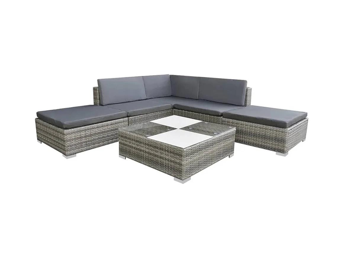 Salon de jardin 6 pcs avec coussins résine tressée gris