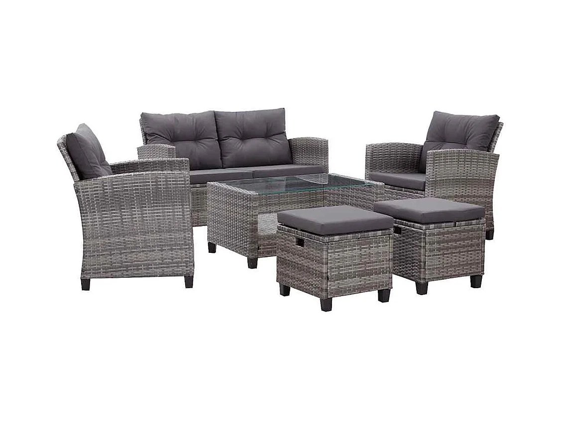 Salon de jardin 6 pcs avec coussins Résine tressée Gris foncé