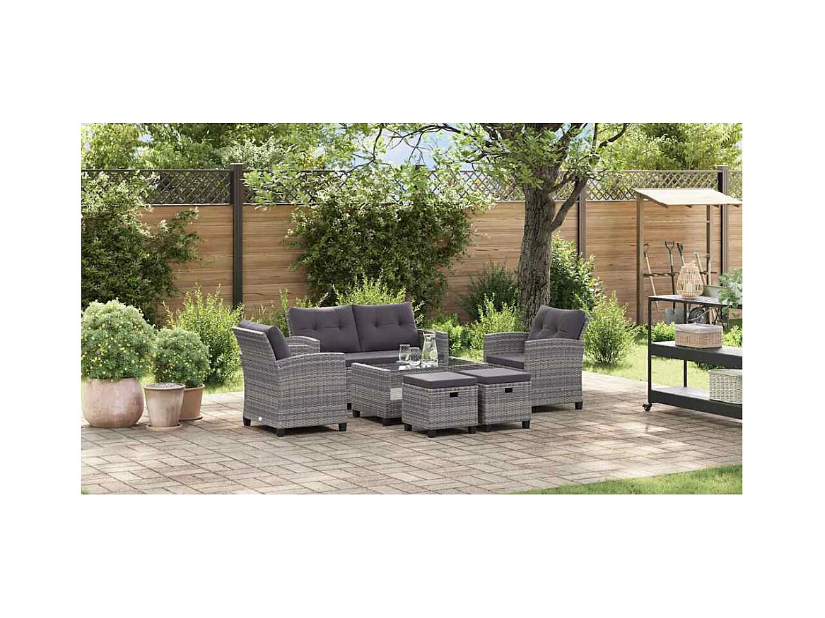 Salon de jardin 6 pcs avec coussins résine tressée anthracite