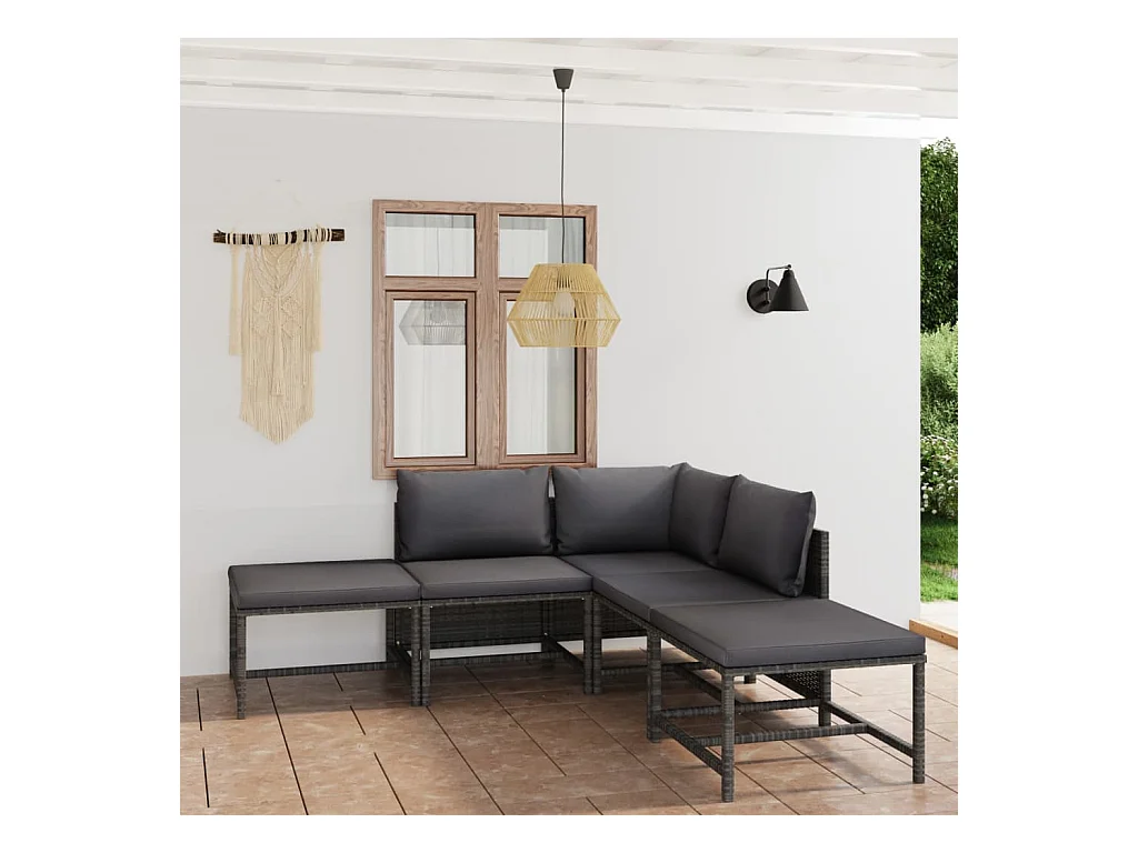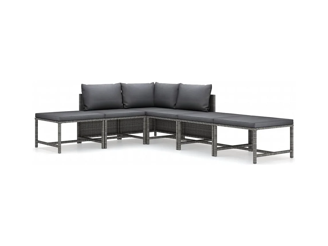 Salon de jardin 6 pcs avec coussins Résine tressée Gris BE27538