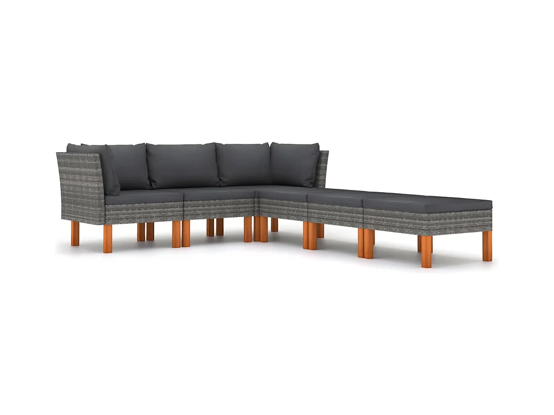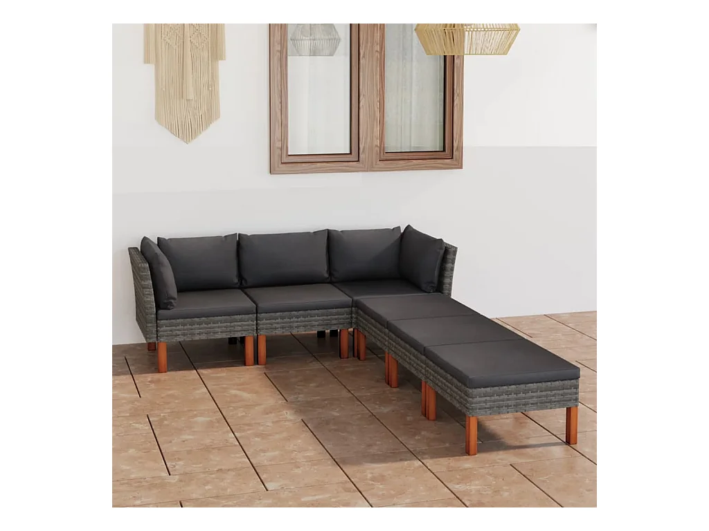 Salon de jardin 6 pcs avec coussins Résine tressée Gris BE51573