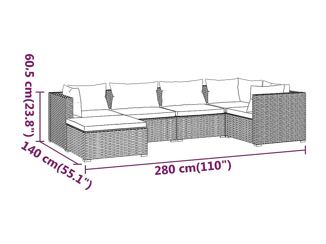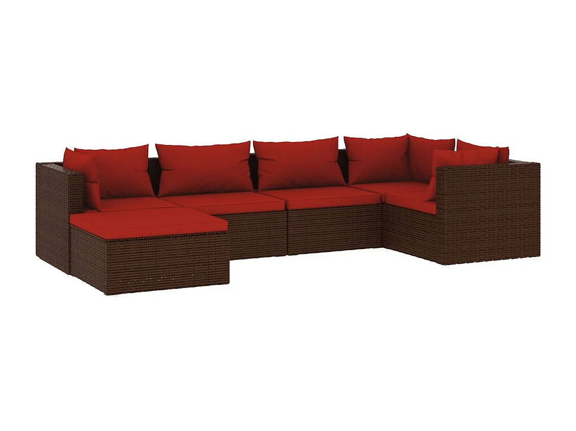 Salon de jardin 6 pcs avec coussins Résine tressée Marron 15