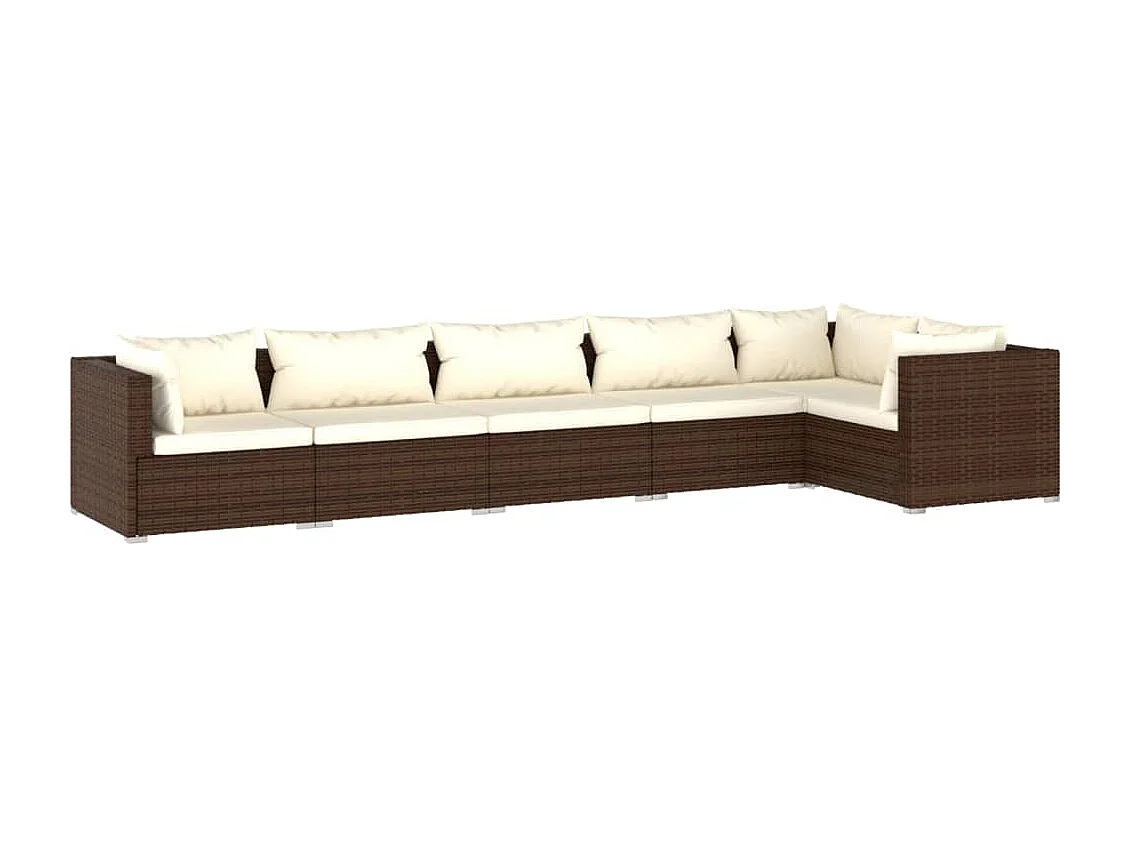 Salon de jardin 6 pcs avec coussins Résine tressée Marron 4
