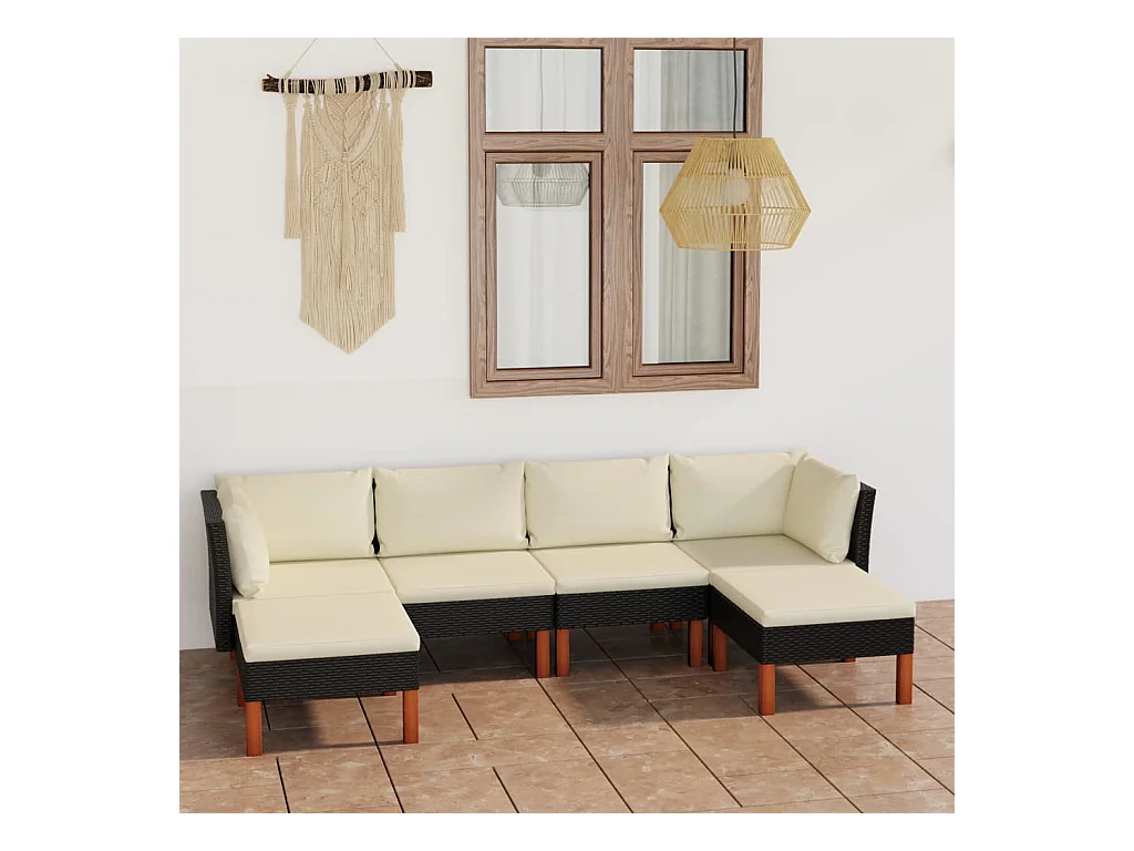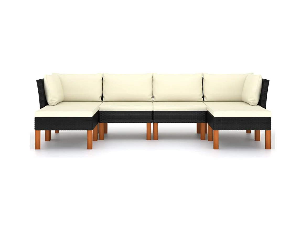 Salon de jardin 6 pcs avec coussins Résine tressée Noir BE15150