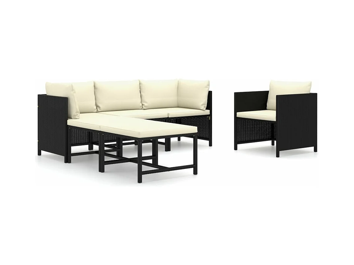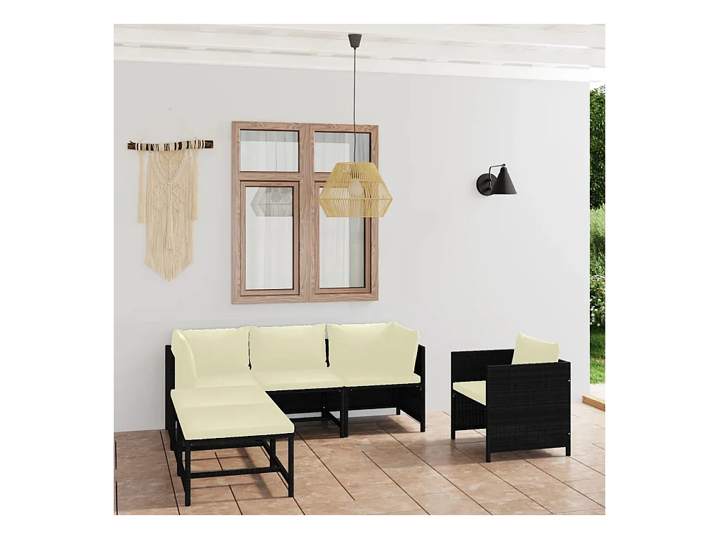 Salon de jardin 6 pcs avec coussins Résine tressée Noir BE35967