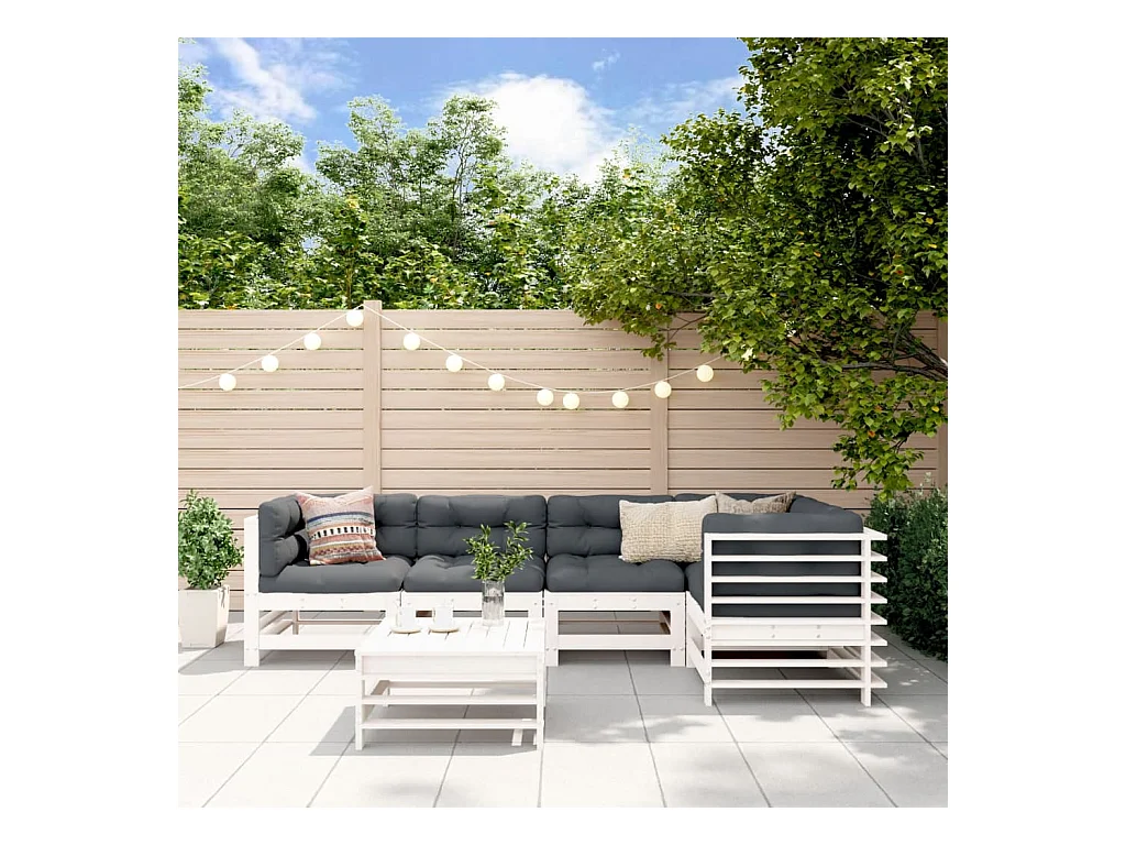 Salon de jardin 6 pcs Blanc Bois de pin massif