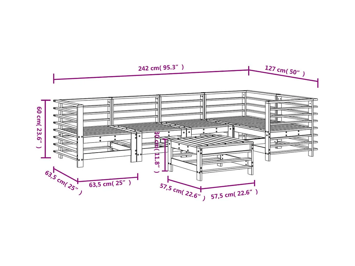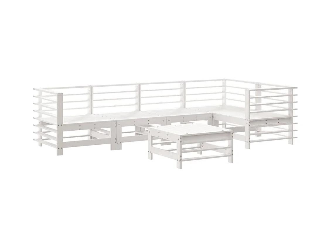 Salon de jardin 7 pcs Blanc Bois de pin massif