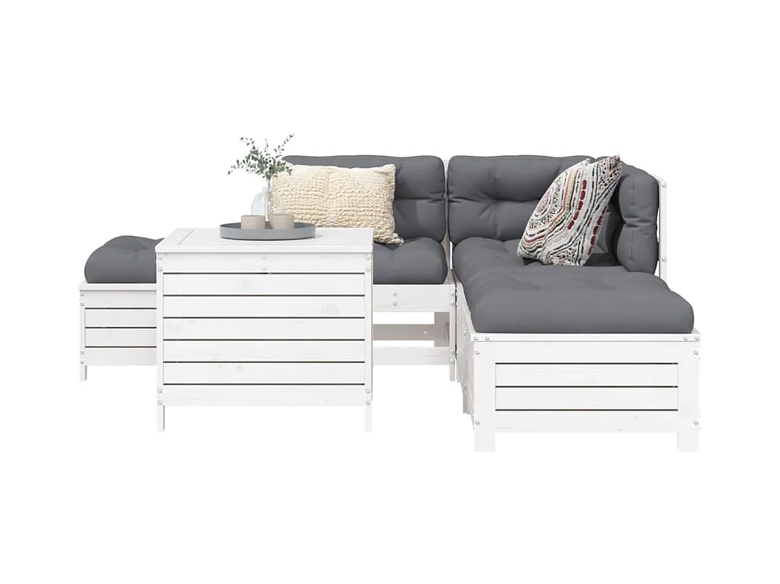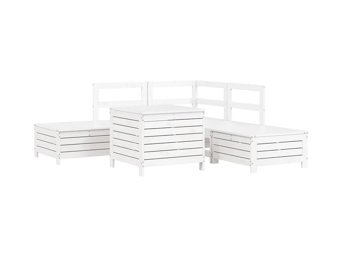 Salon de jardin 5 pcs blanc bois massif de pin