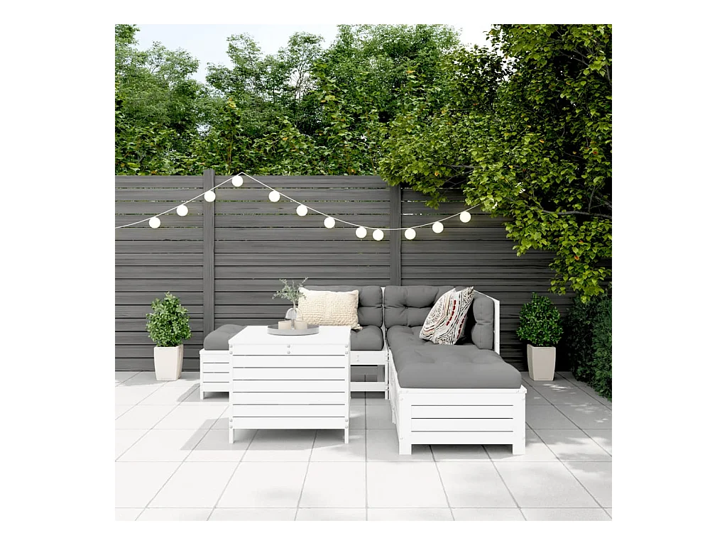 Salon de jardin 6 pcs blanc bois de pin massif
