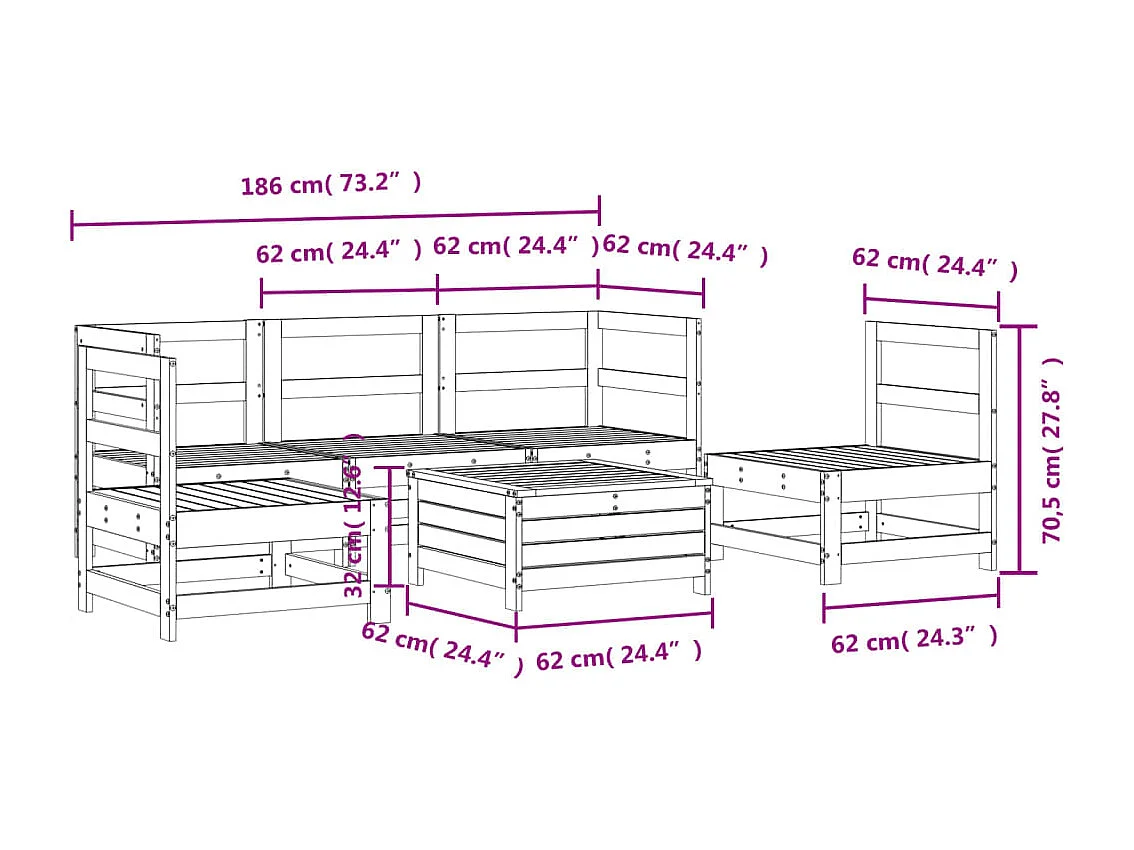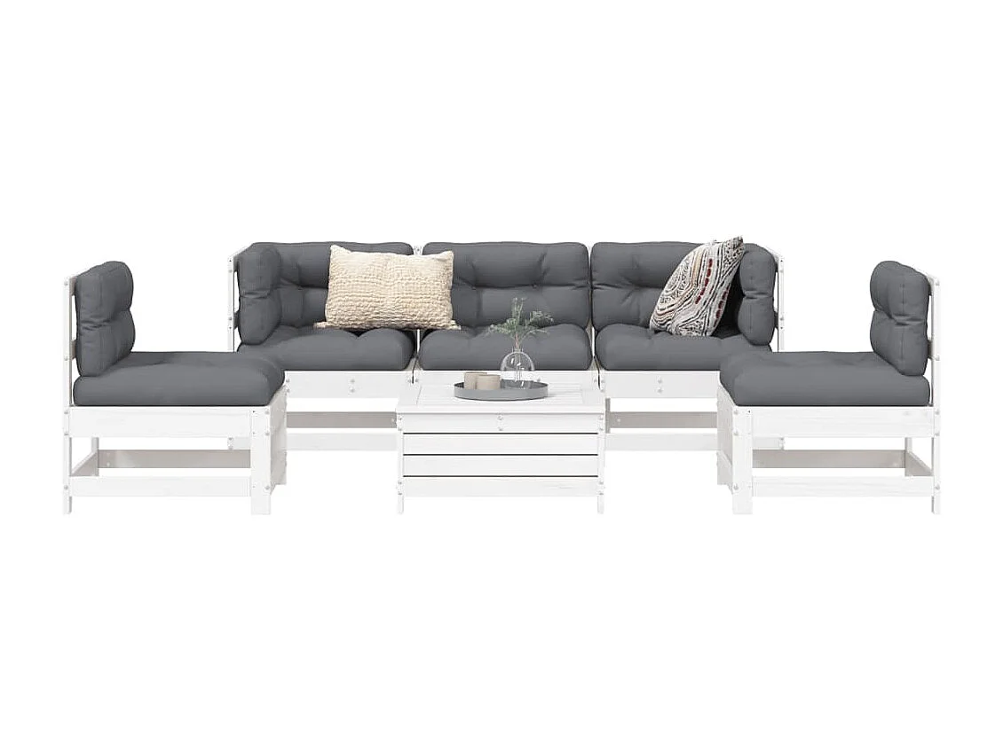 Salon de jardin 6 pièces Blanc Bois de pin massif