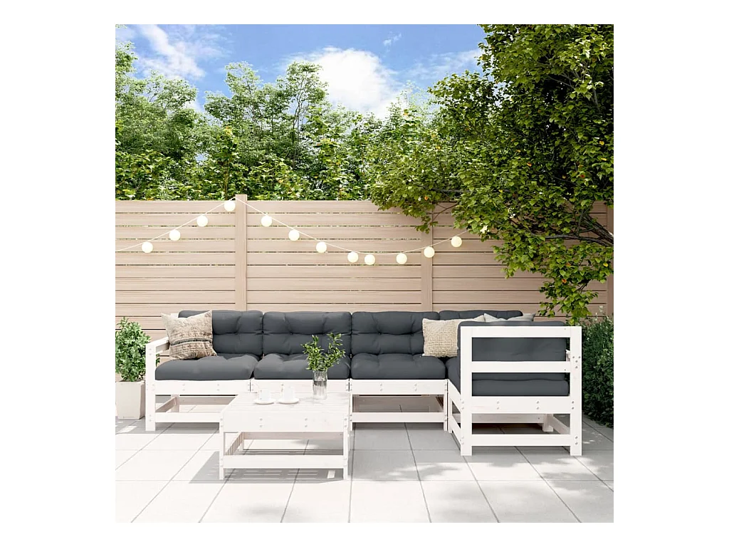 Salon de jardin 7 pièces avec coussins blanc bois massif
