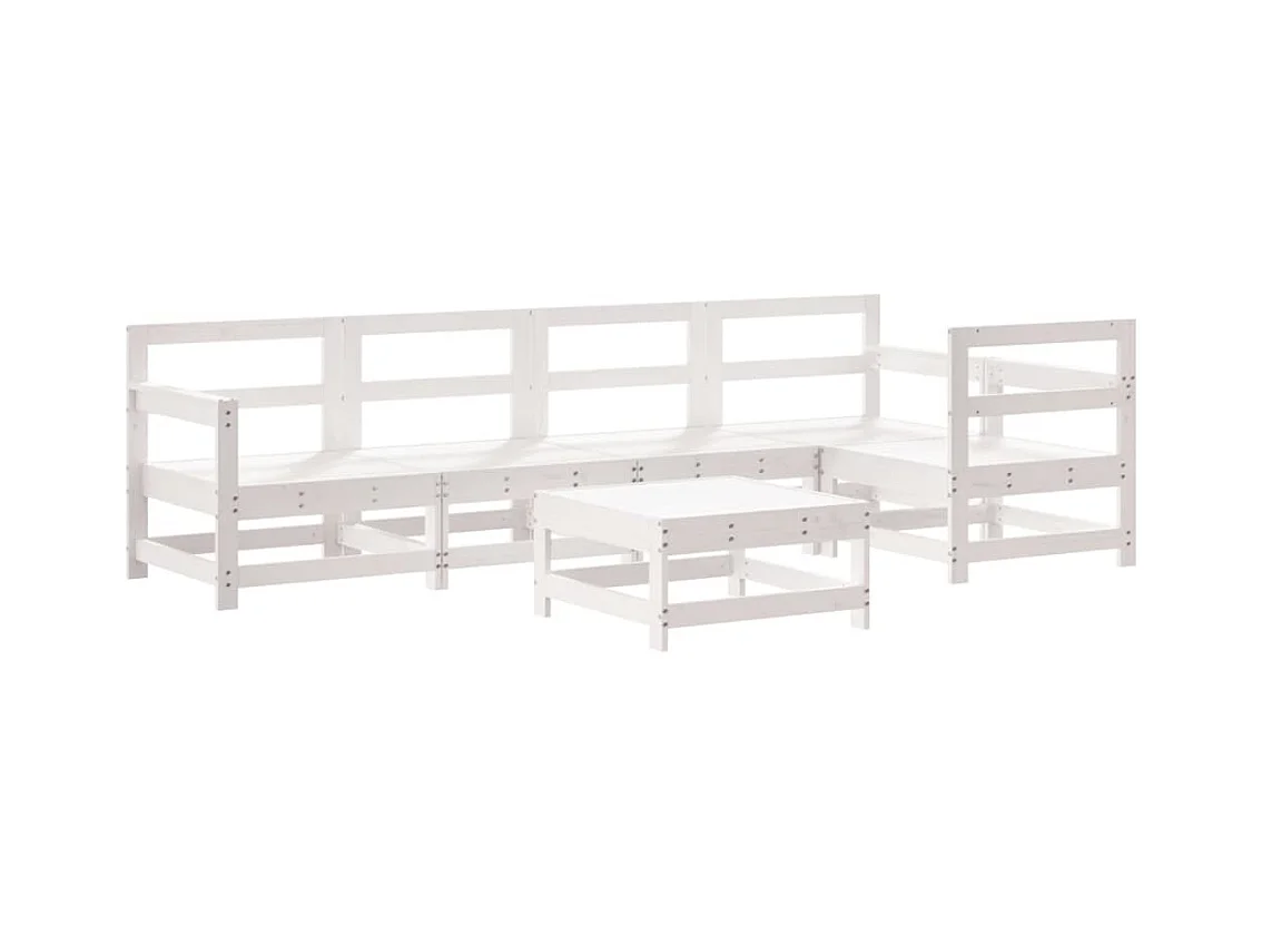 Salon de jardin 6 pcs blanc bois de pin massif