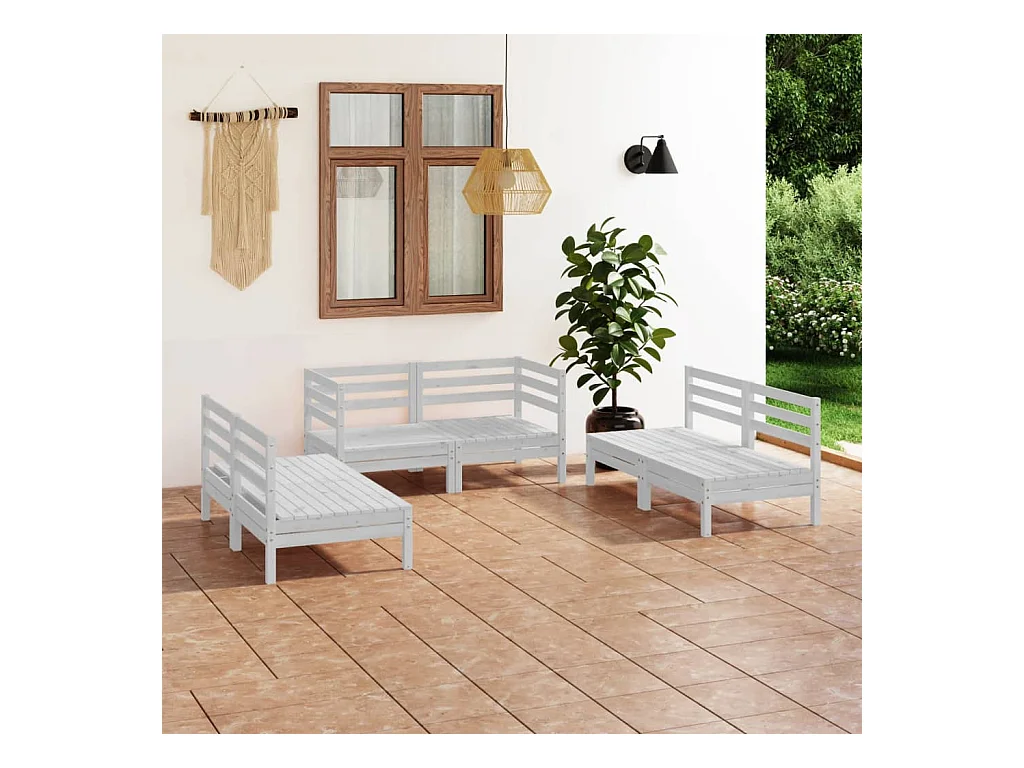 Salon de jardin 6 pcs Blanc Bois de pin massif BE85525