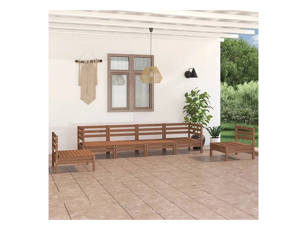 Salon de jardin 6 pcs Marron miel Bois de pin massif BE98038