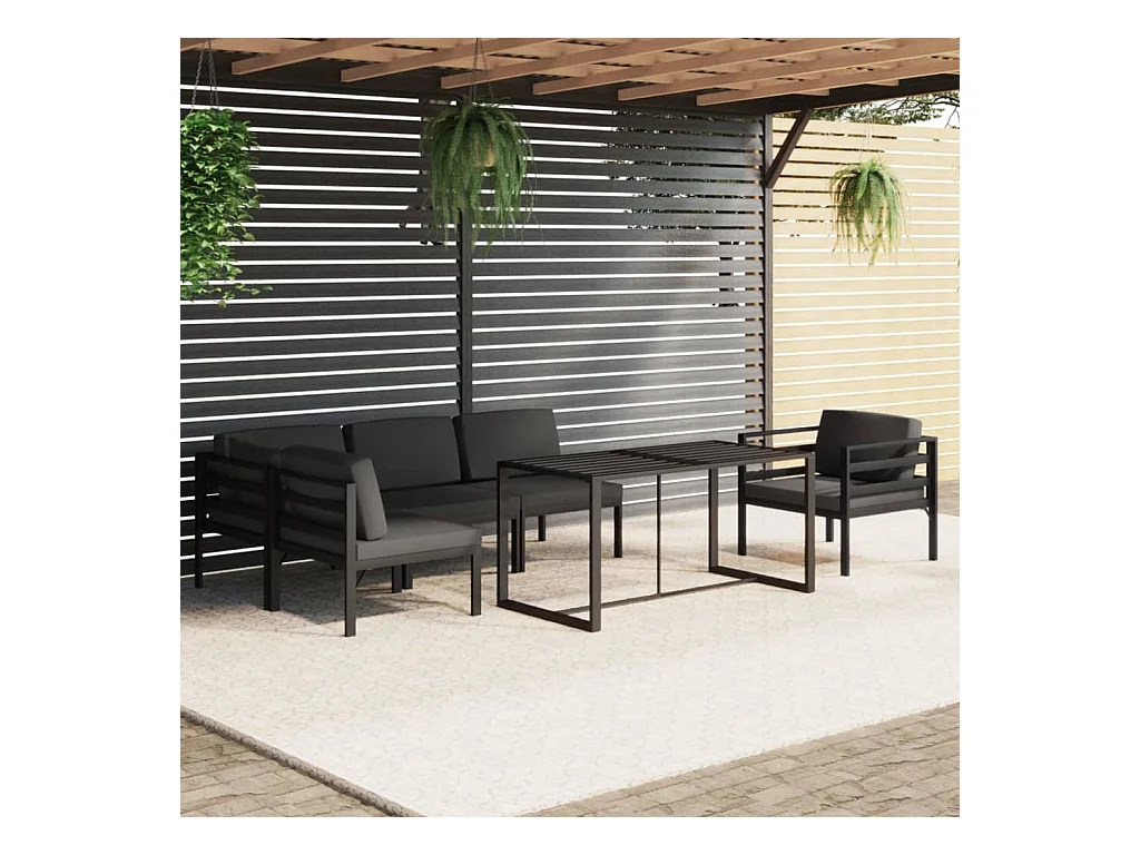 Salon de jardin 6 pièces avec coussins Aluminium Anthracite