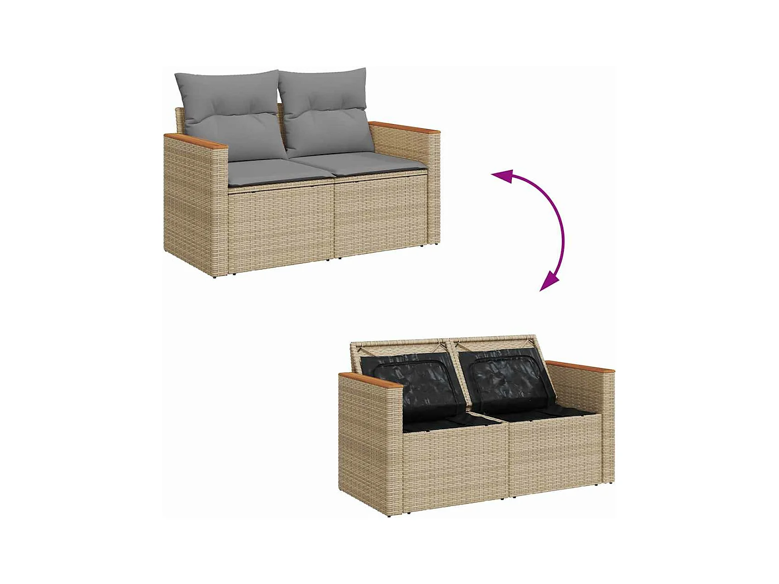 Salon de jardin avec coussins 7 pièces beige résine tressée acacia