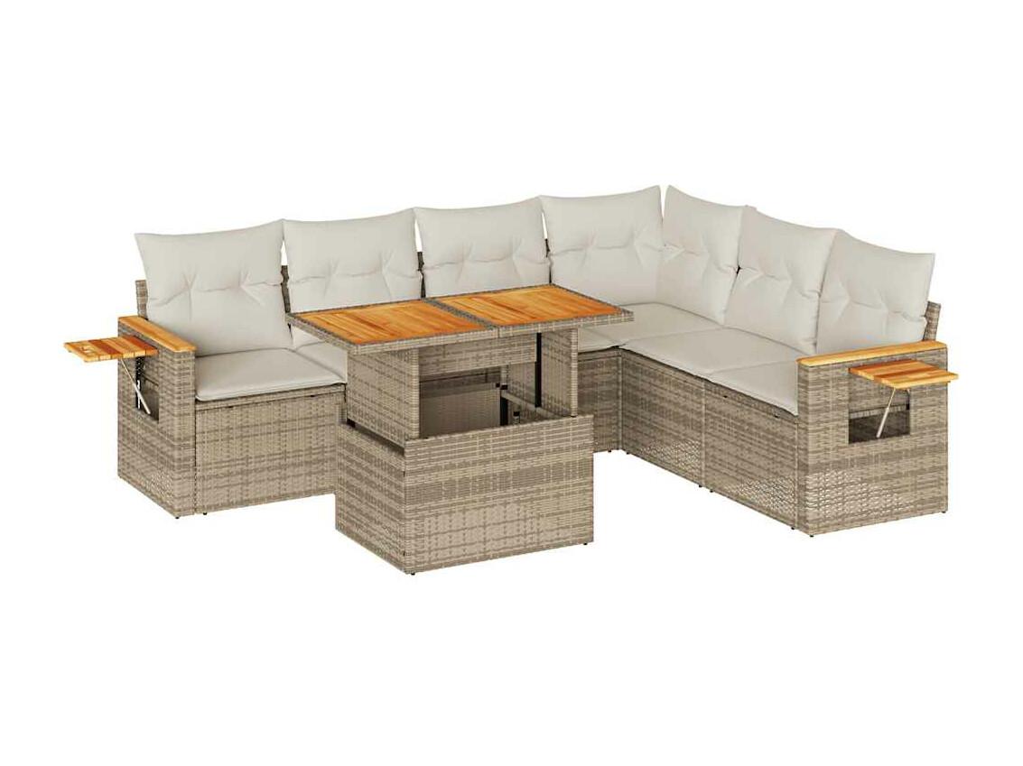 Salon de jardin avec coussins 7 pièces beige résine tressée acacia