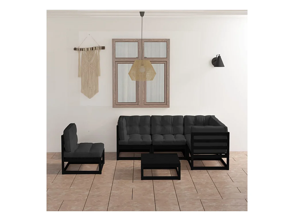 Salon de jardin 6 pièces avec coussins Bois de pin massif