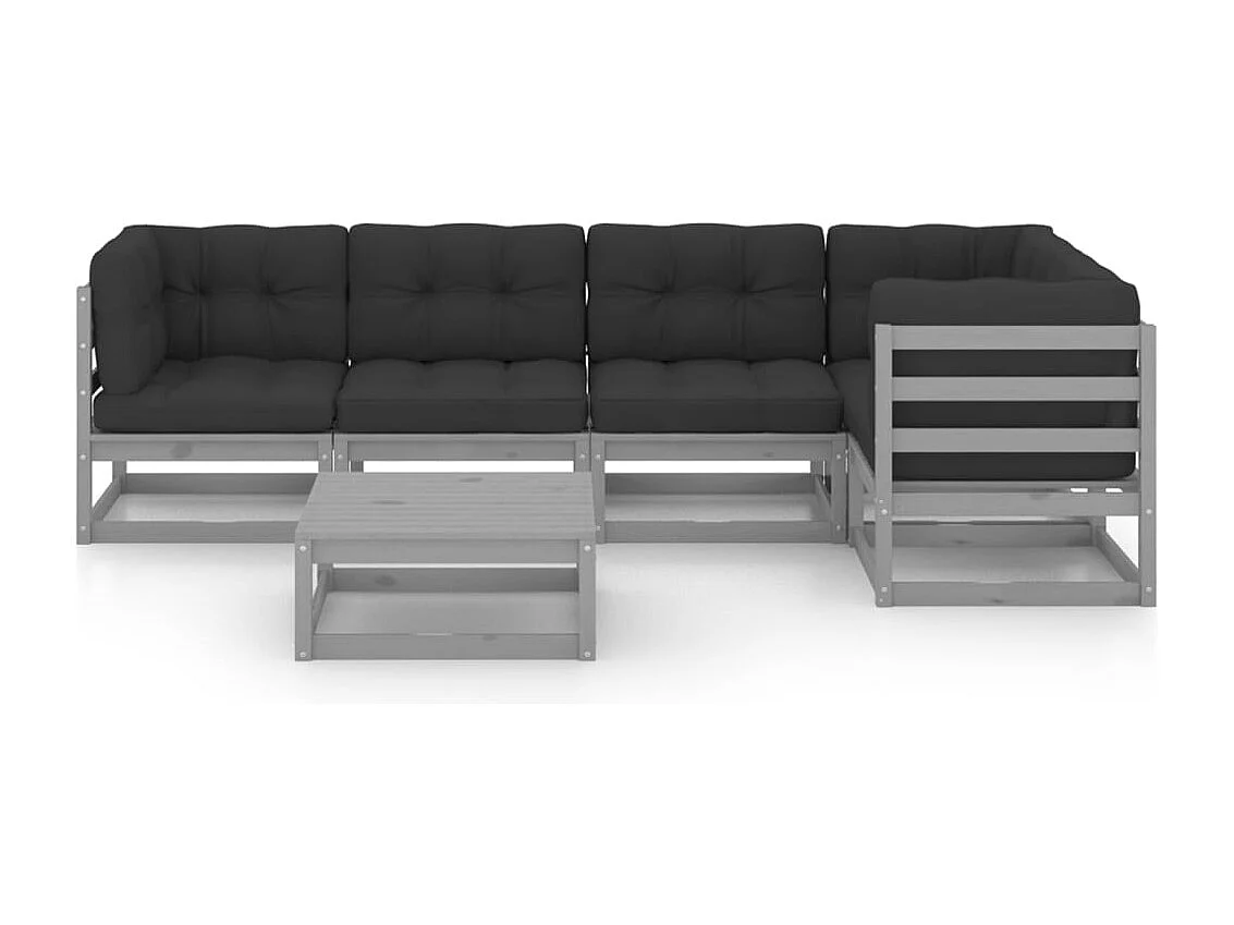 Salon de jardin 6 pièces avec coussins gris bois de pin