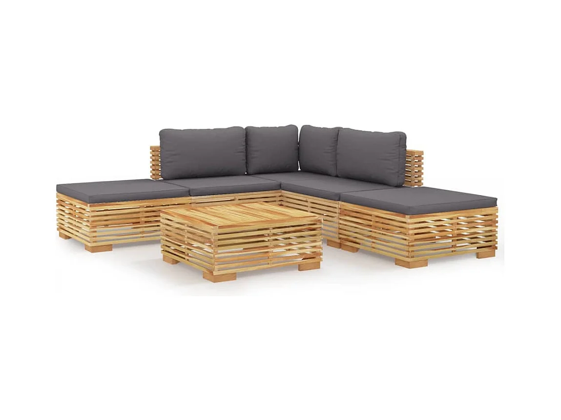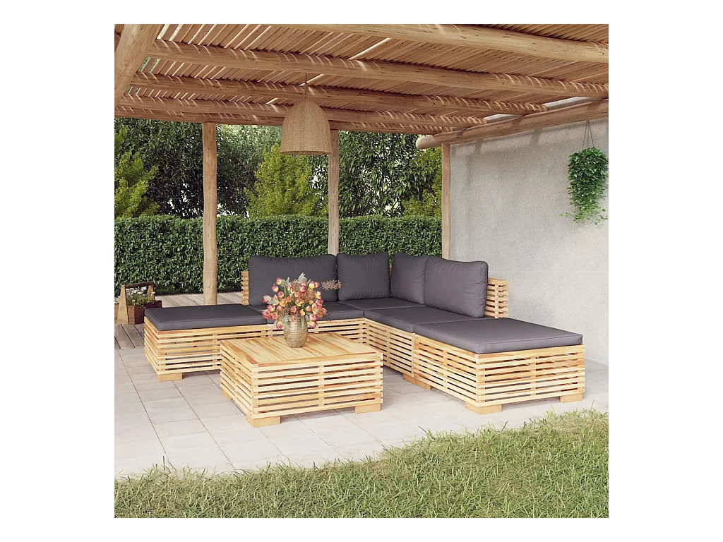 Salon de jardin 6 pièces avec coussins Bois de teck solide