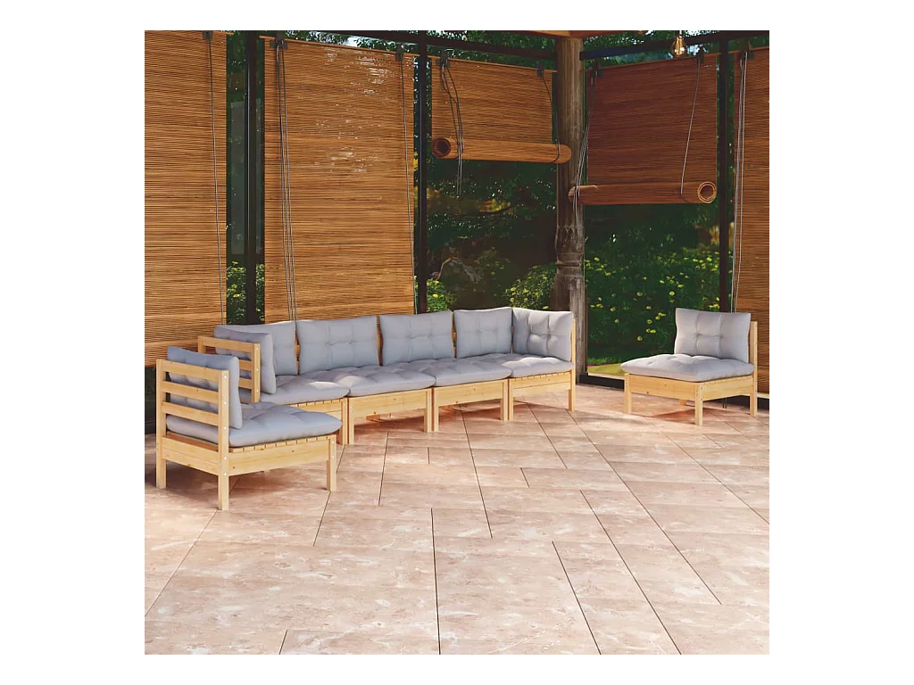 Salon de jardin 6 pièces avec coussins gris bois de pin massif