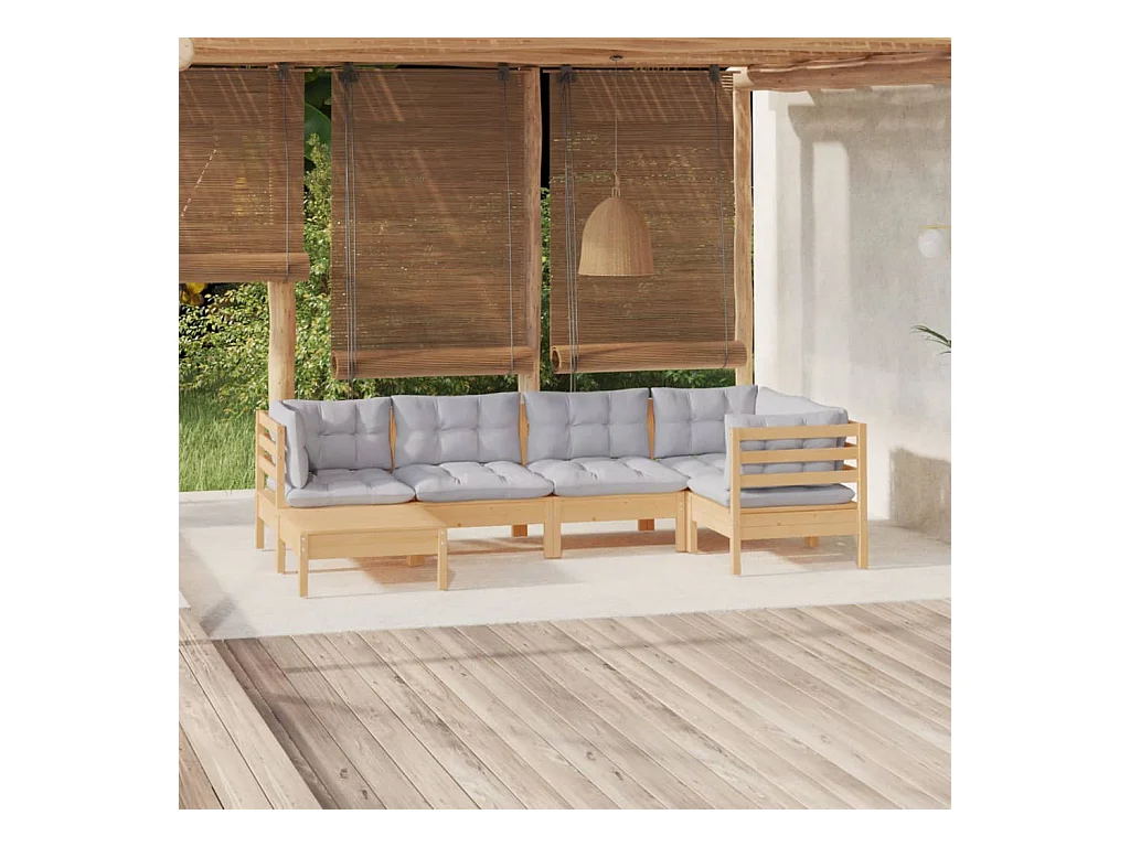 Salon de jardin 6 pièces avec coussins gris bois de pin