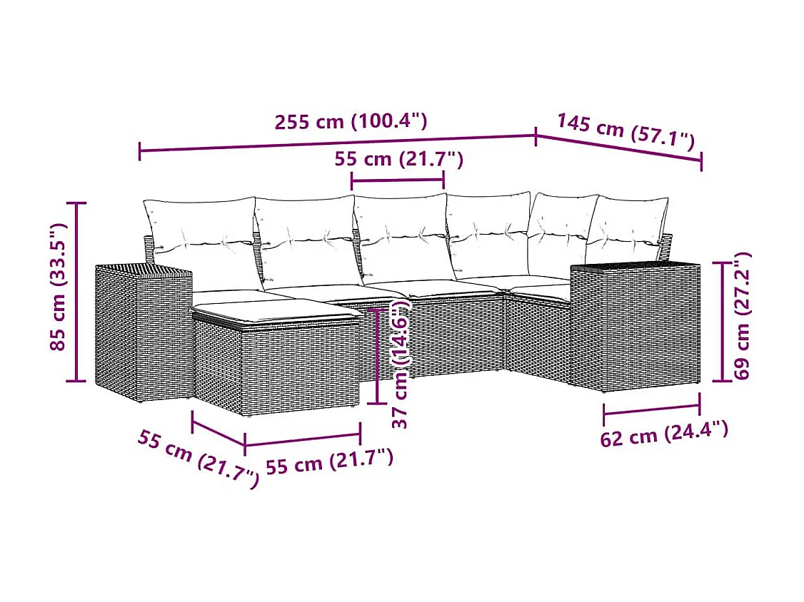 Salon de jardin 6 pièces avec coussins gris clair résine tressée