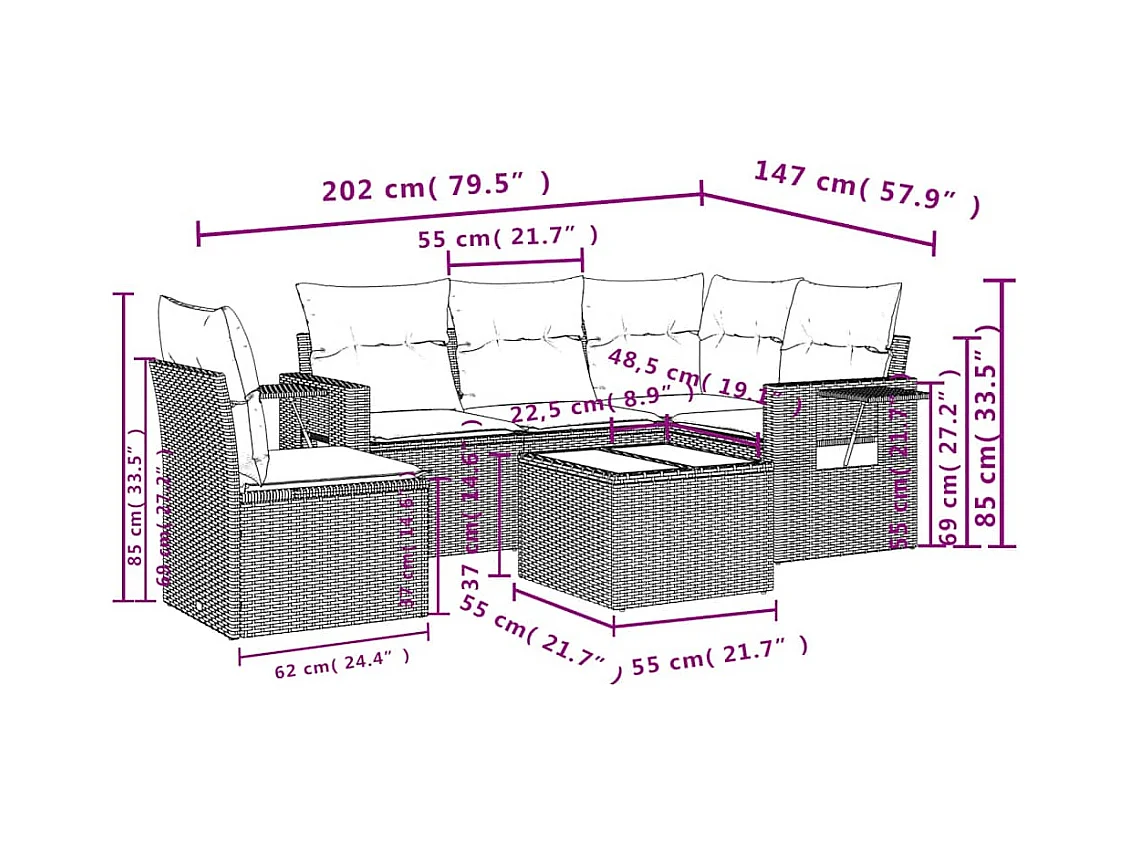 Salon complet de jardin Canapé 2 places et 2 fauteuils