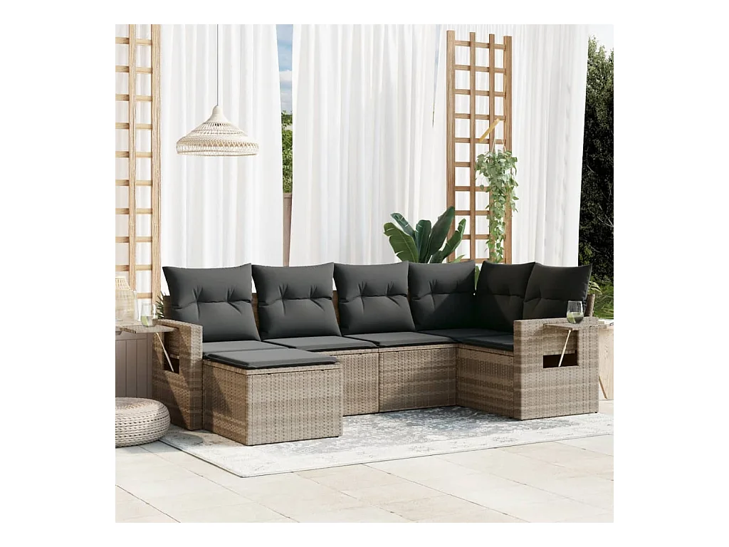 Salon de jardin 6 pièces avec coussins gris clair résine tressée