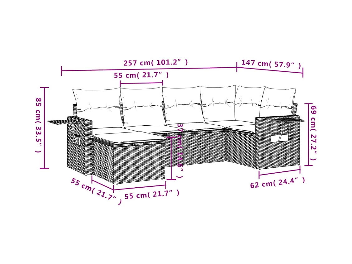 Salon complet de jardin Canapé 2 places et 2 fauteuils