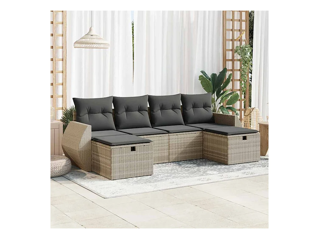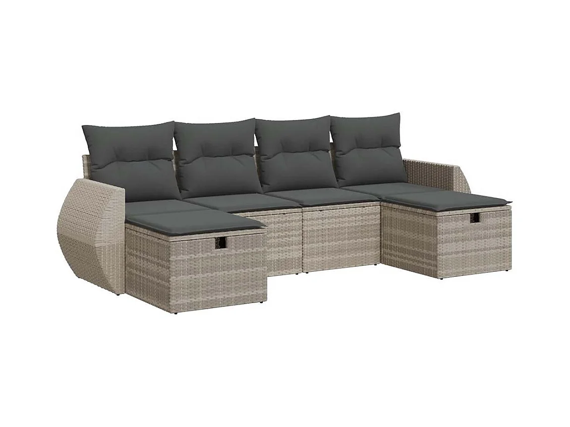 Salon de jardin 6 pièces avec coussins gris clair résine tressée