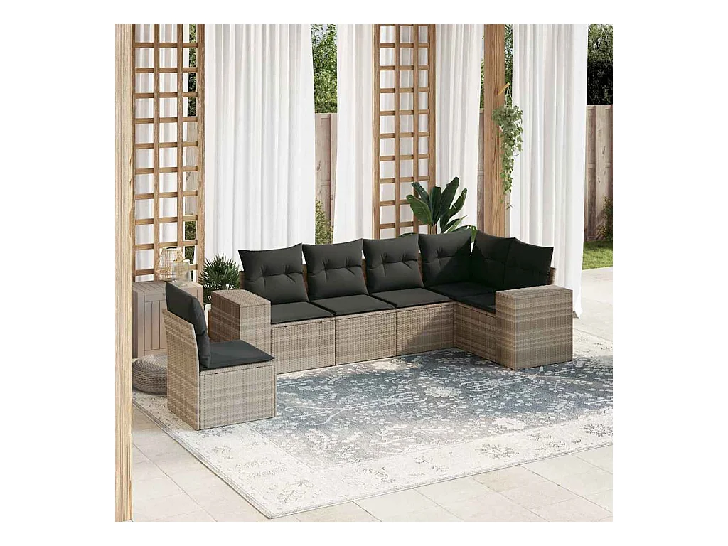 Salon de jardin 6 pièces avec coussins gris clair résine tressée