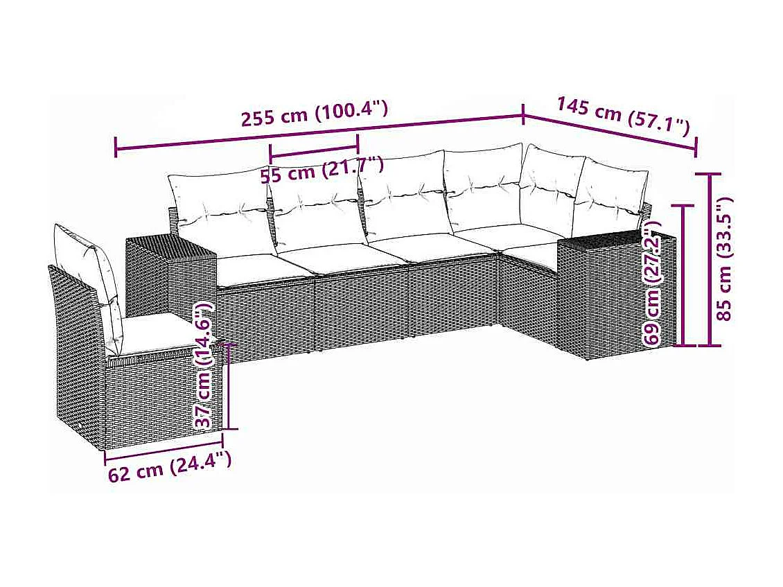 Salon de jardin avec coussins 7 pièces gris clair résine tressée