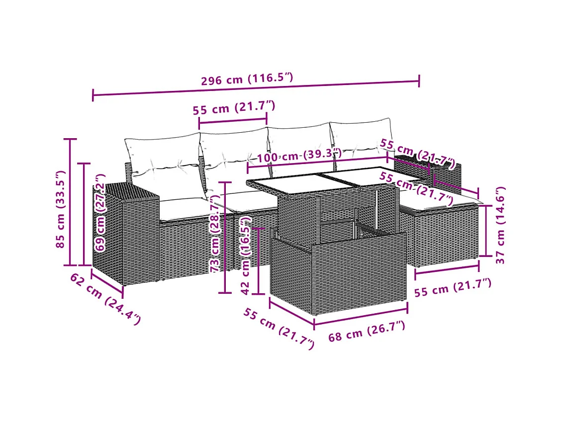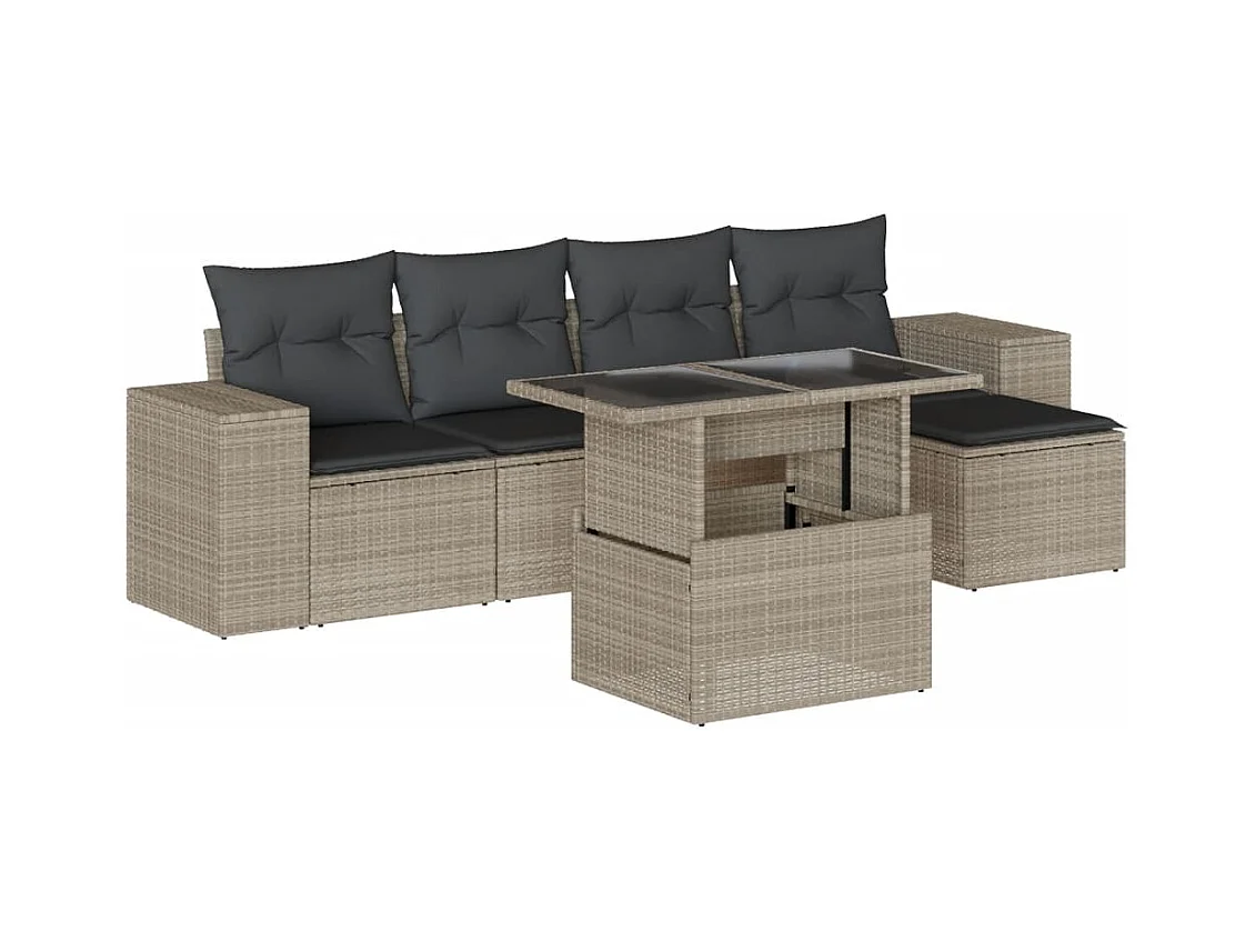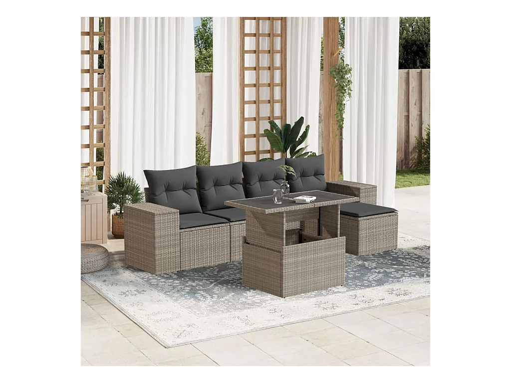 Salon de jardin 6 pièces avec coussins gris clair résine tressée
