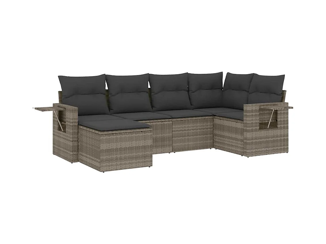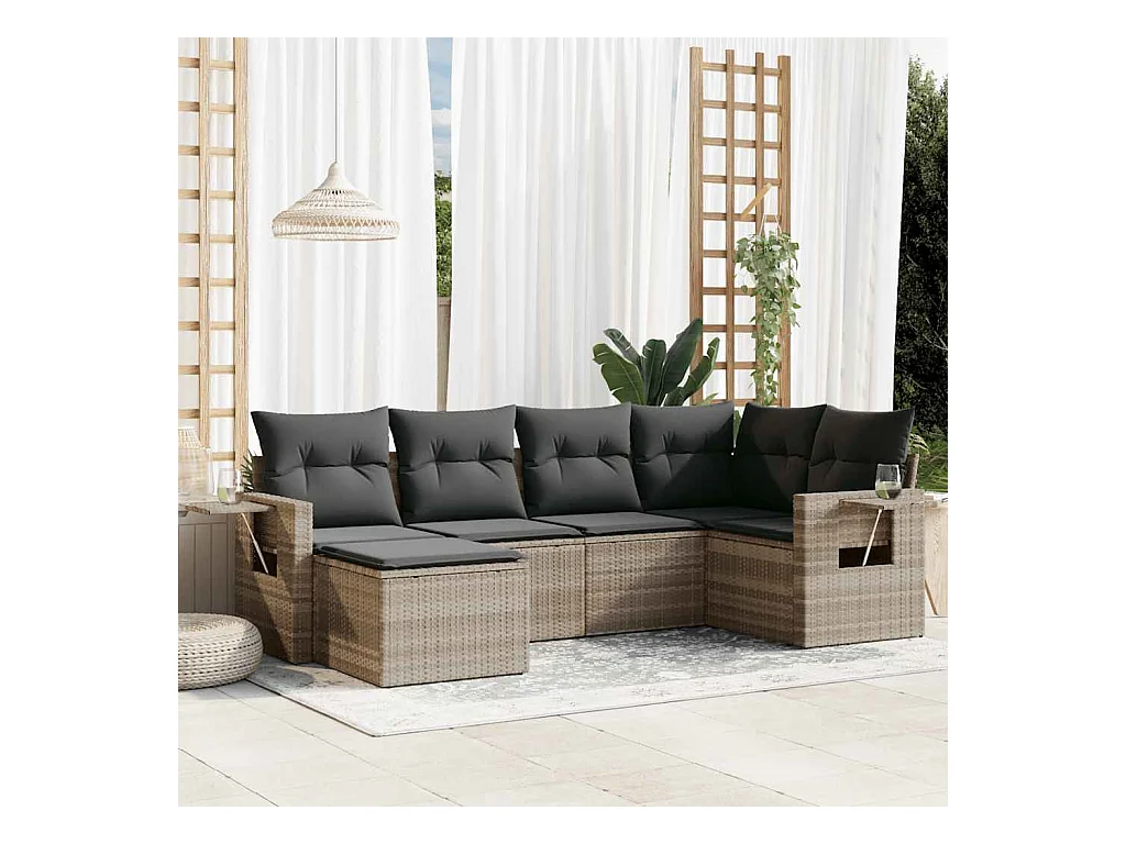 Salon de jardin 6 pièces avec coussins gris clair résine tressée