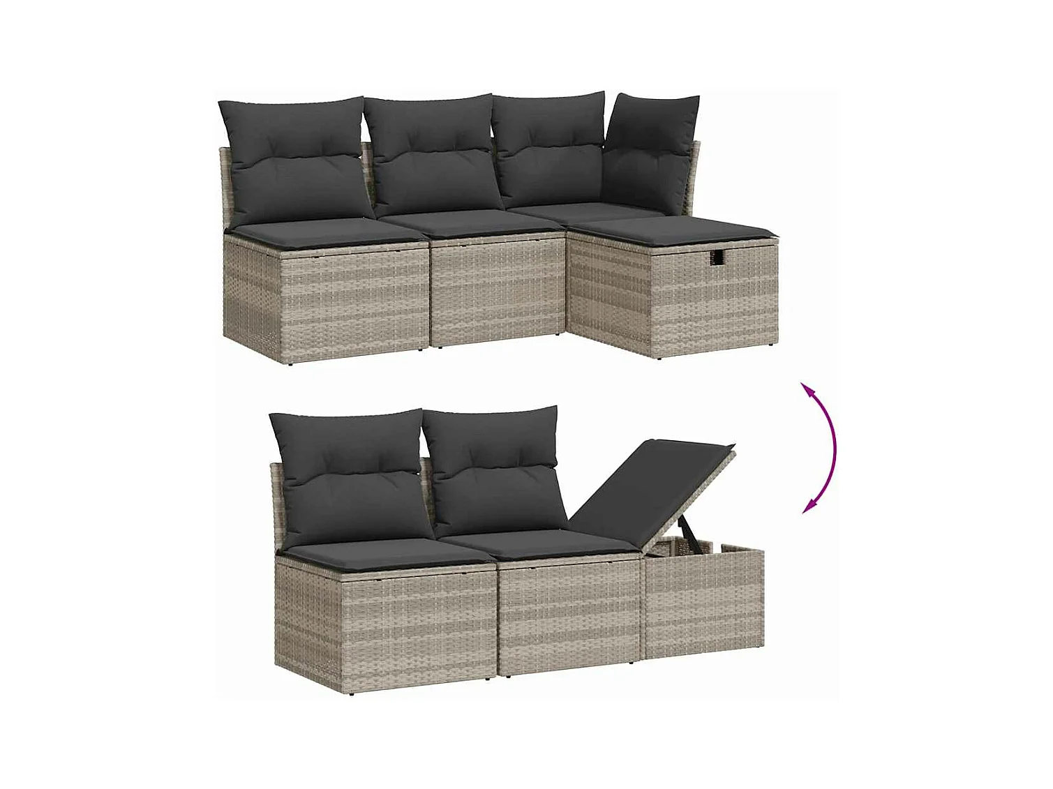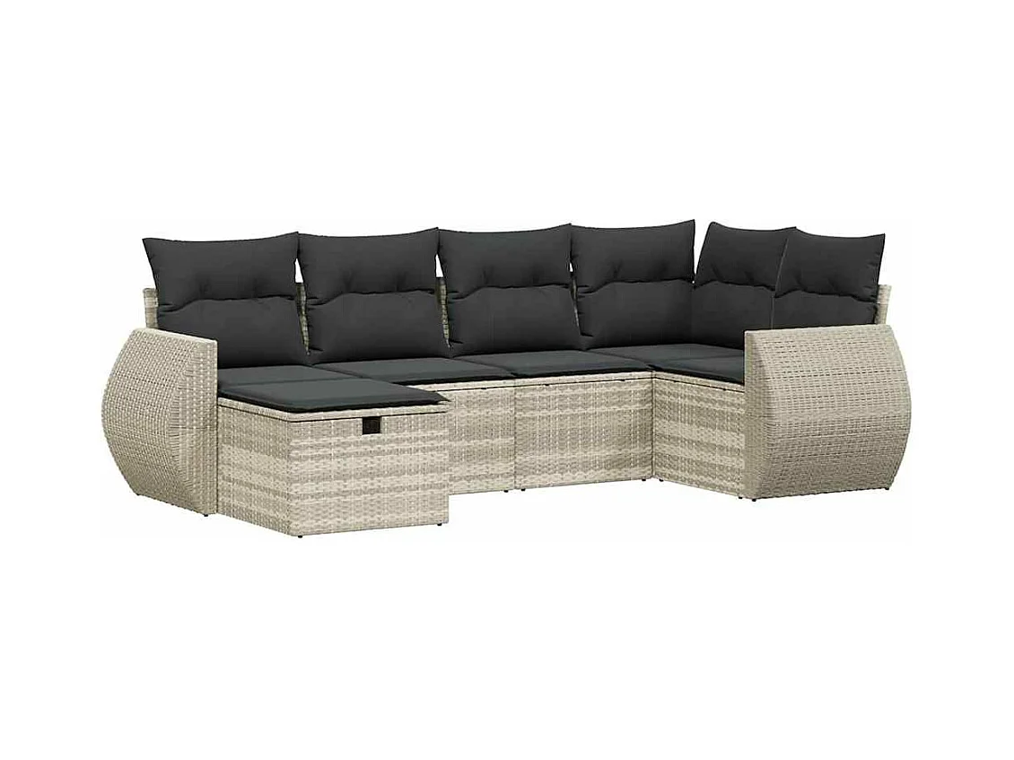 Salon de jardin 6 pièces avec coussins gris clair résine tressée