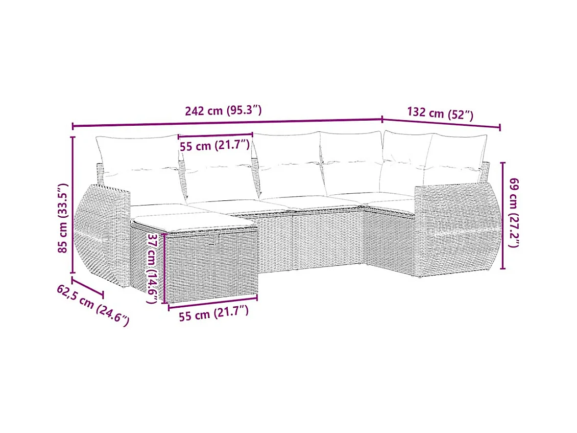 Salon complet de jardin Canapé 2 places et 2 fauteuils