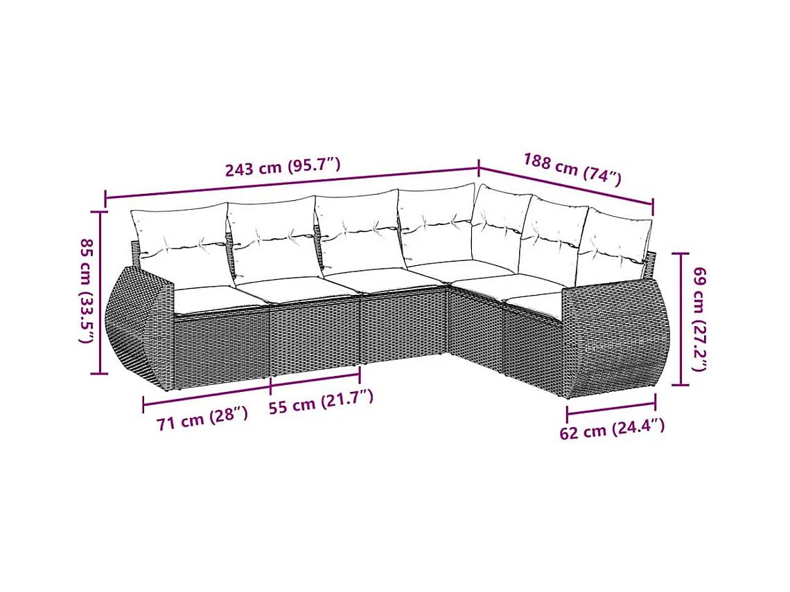 Salon de jardin 6 pièces avec coussins gris clair résine tressée