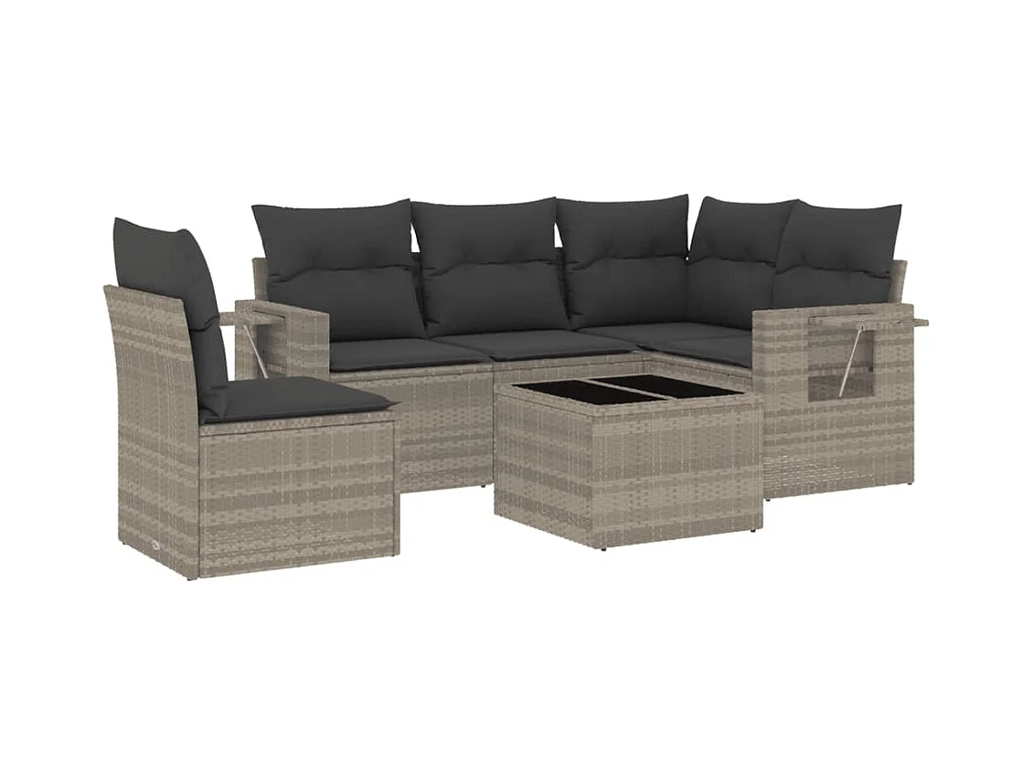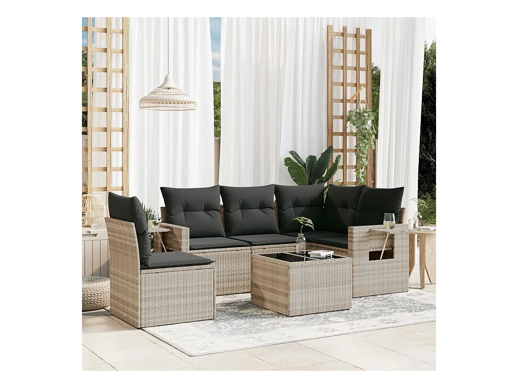 Salon de jardin 6 pièces avec coussins gris clair résine tressée