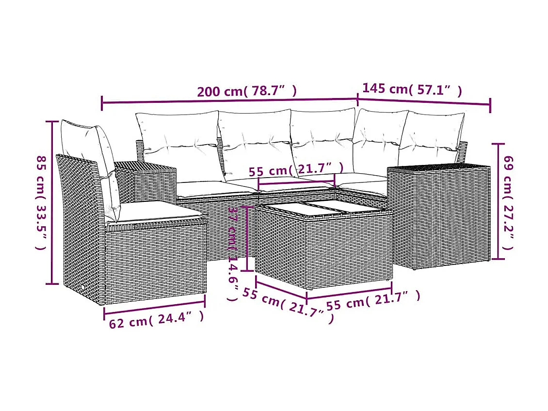 Salon de jardin 6 pièces avec coussins gris clair résine tressée