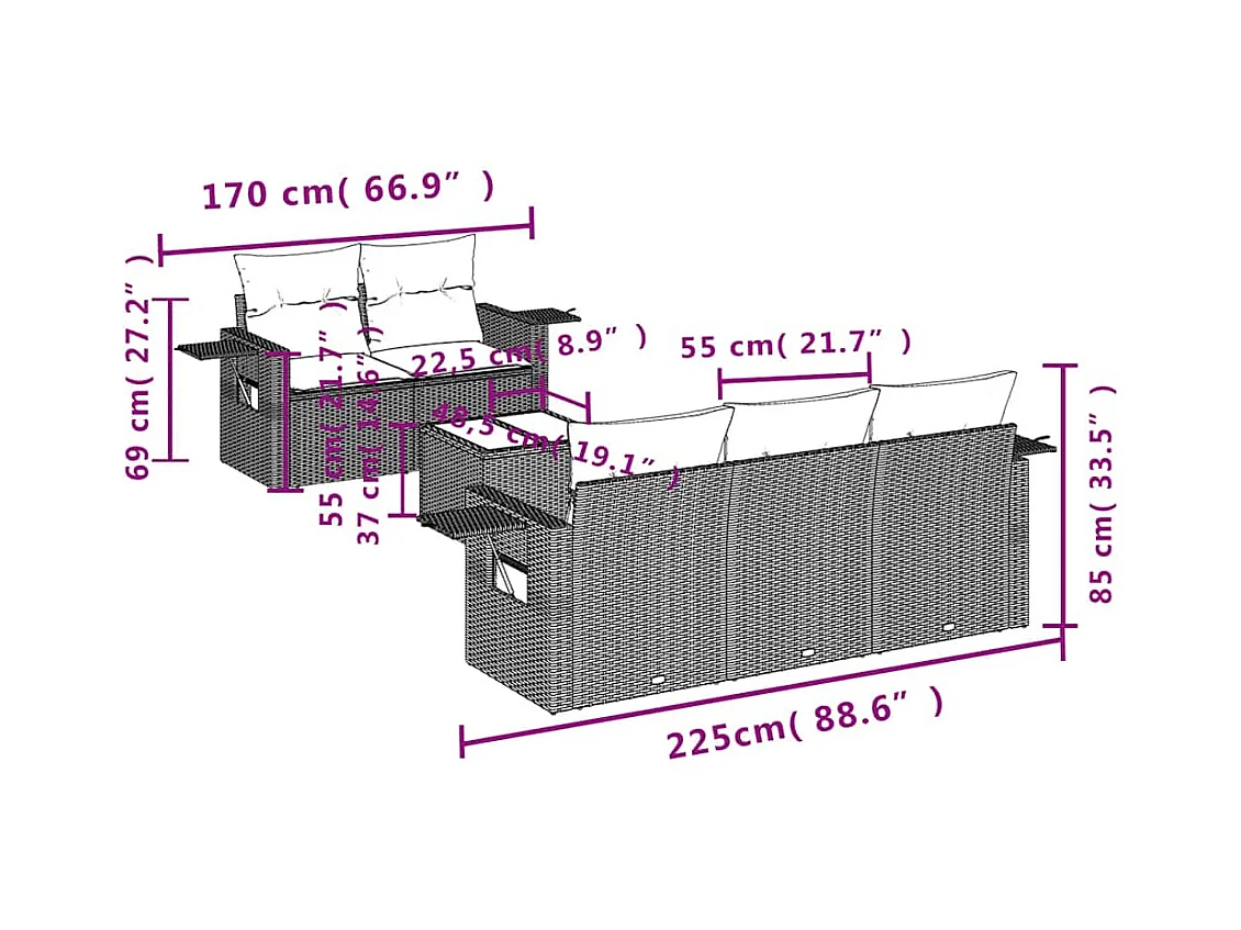 Salon de jardin avec coussins 7 pièces gris clair résine tressée