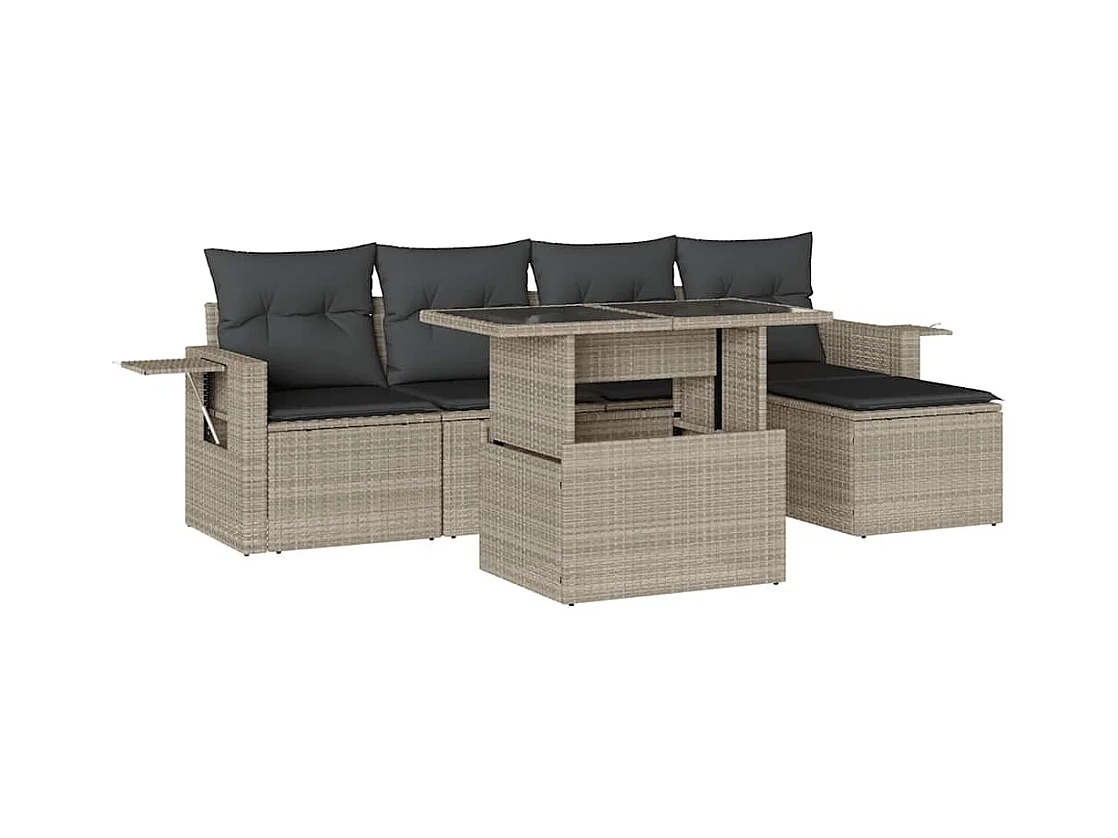 Salon de jardin 6 pièces avec coussins gris clair résine tressée
