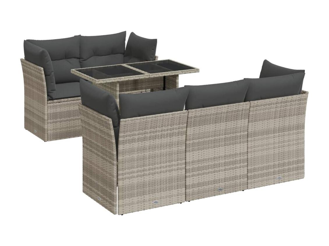 Salon de jardin 6 pièces avec coussins gris clair résine tressée