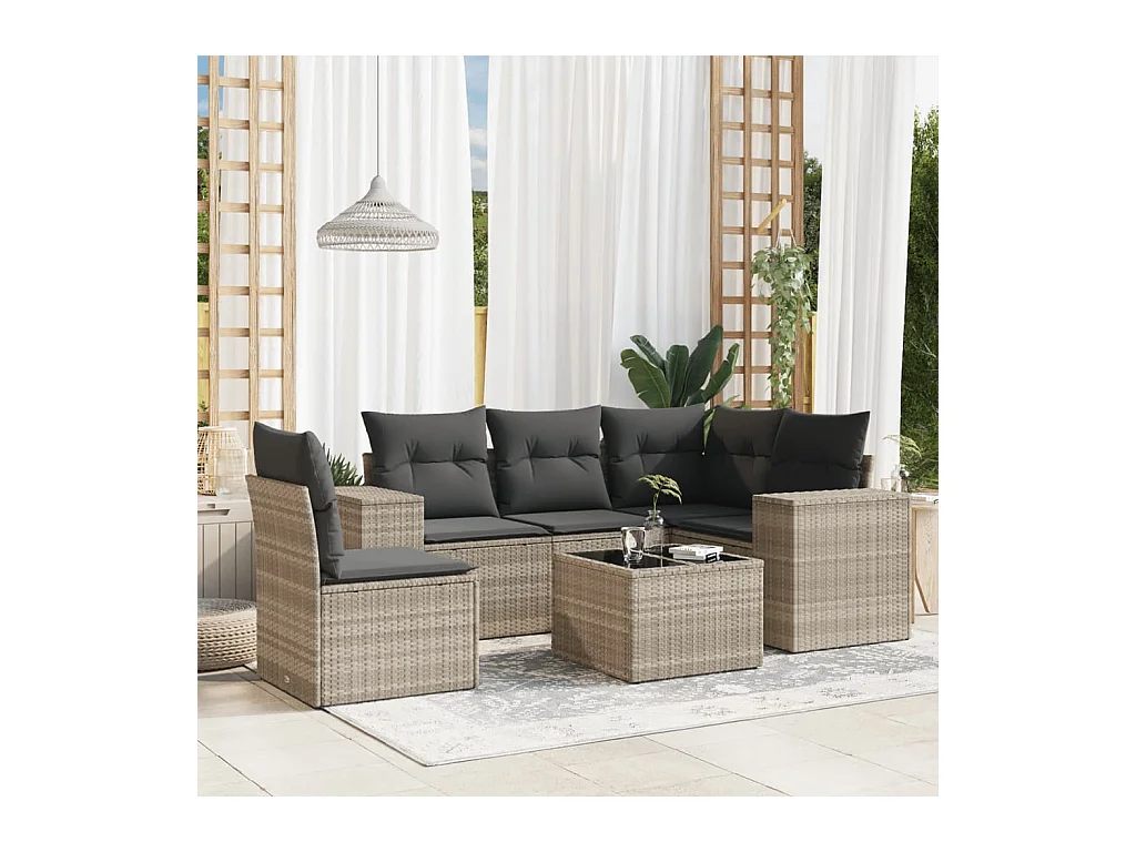 Salon de jardin 6 pièces avec coussins gris clair résine tressée